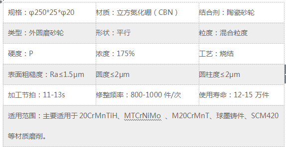 下面是興大陶瓷CBN凸輪軸砂輪φ250*25*φ20達到的技術要求: